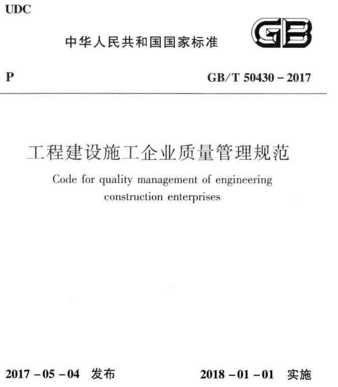 GB50430T2017工程建設(shè)施工企業(yè)質(zhì)量管理規(guī)范2018.1.1實(shí)施